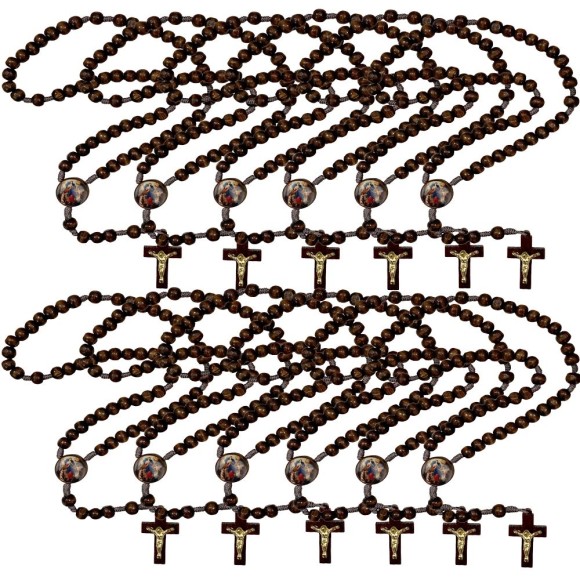 TE940095P12 - Terço N. Sra. Desatadora dos Nós Madeira c/ 12un. - 37cm