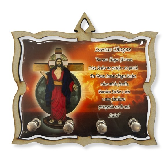 *Porta Chaves Santas Chagas de Jesus MDF Resinado - 15,5x14cm.