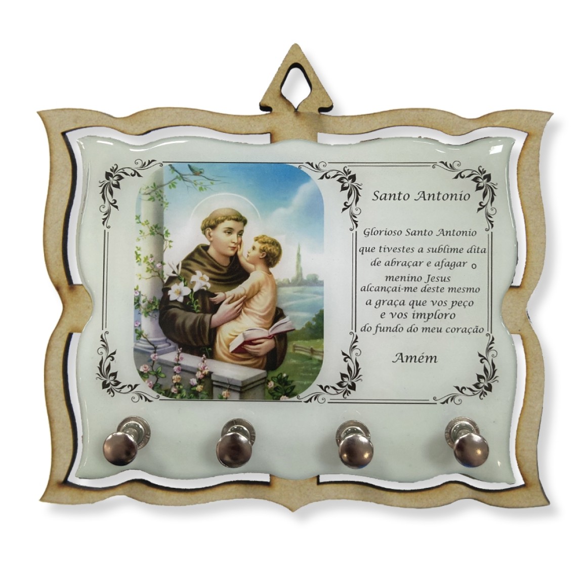 *Porta Chaves Santo Antônio MDF Resinado - 15,5x14cm.