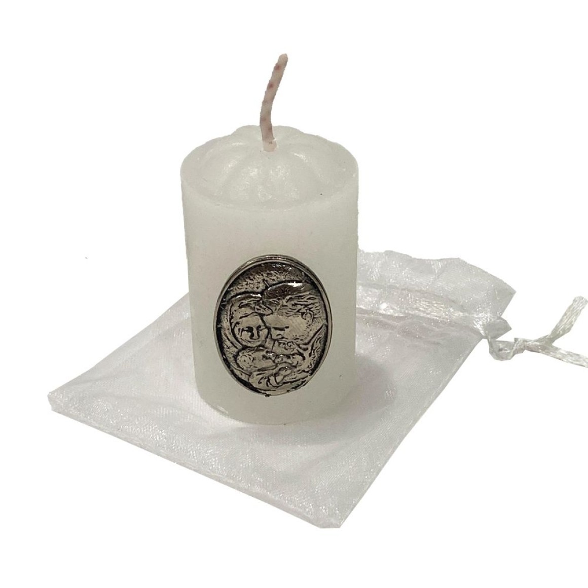 *Vela Sagrada Família c/ Pingente Níquel Envelhecido - 6x3,5cm.