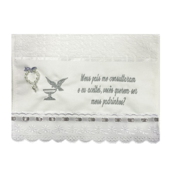 *Toalha Batismo (Padrinhos) Cinza c/ Dezena - 45x31cm.