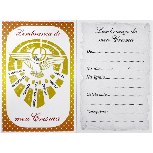 *Cartão Lembrança do Meu Crisma c/ 12un.