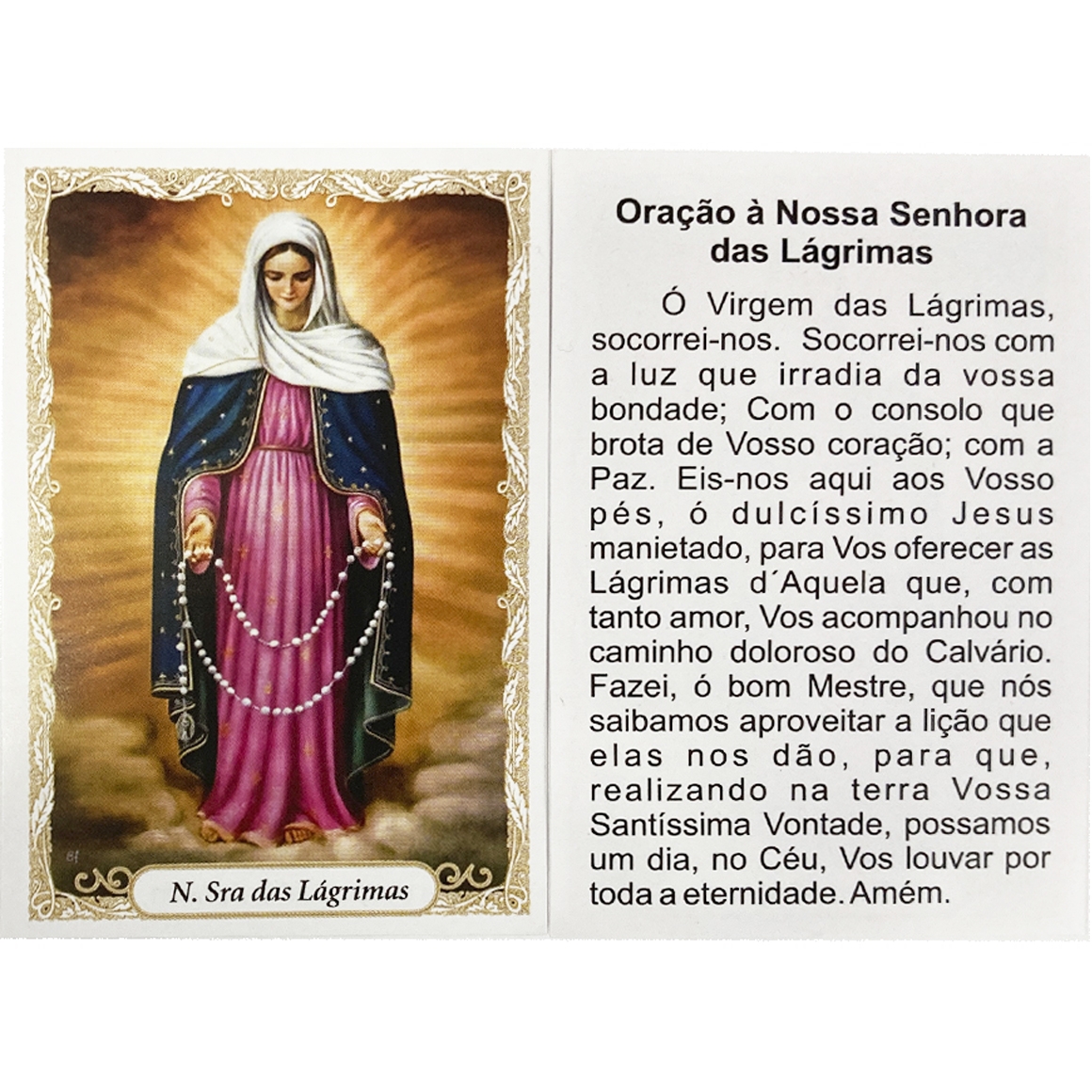 ST16011 - Mini Santinha N. Sra. Das Lágrimas de Biscuit c/ Oração