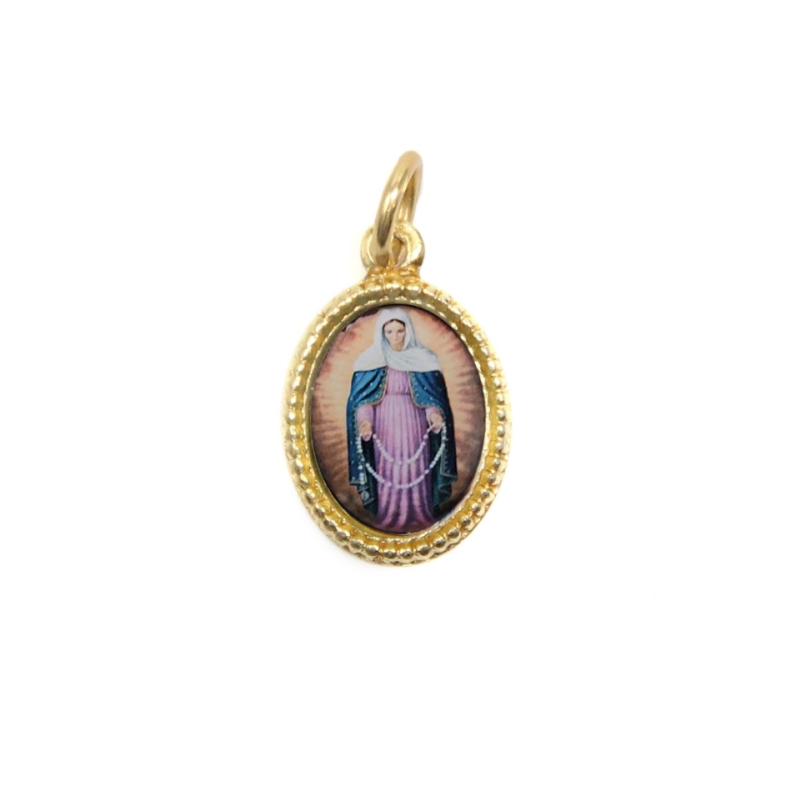 MD102037P20 - Medalha de Alumínio Oval Dourada c/ 20un. N. Sra. Das Lágrimas - 1,5x1cm