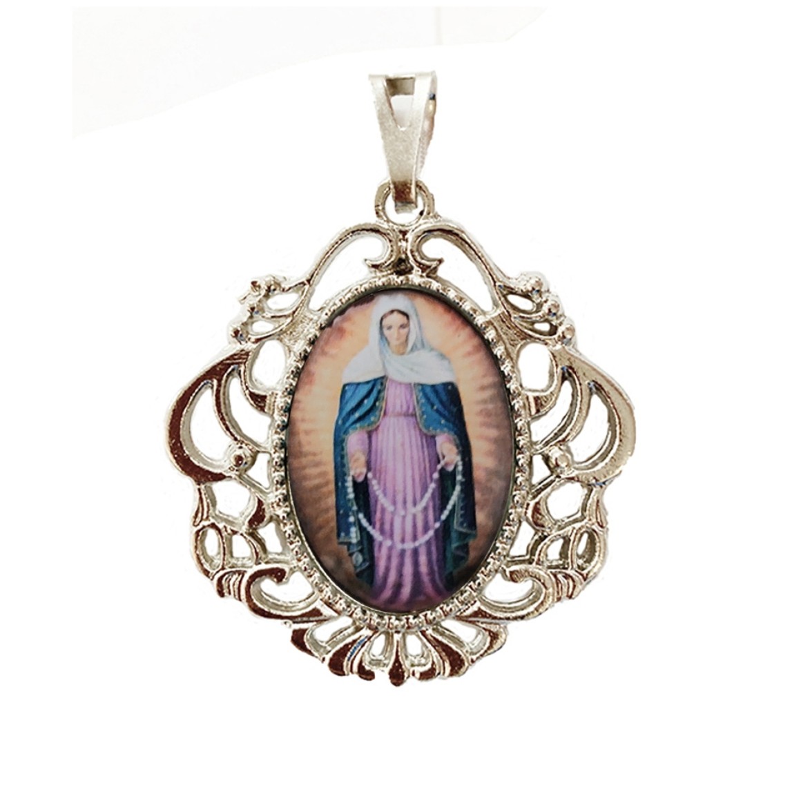 MD129094 - Medalha N. Sra. Das Lágrimas Camafeu Níquel - 4,5x4cm
