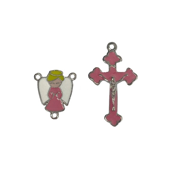 *Kit contendo 1un. Cruz e 1un. Entremeio Anjinho Rosa Níquel.
