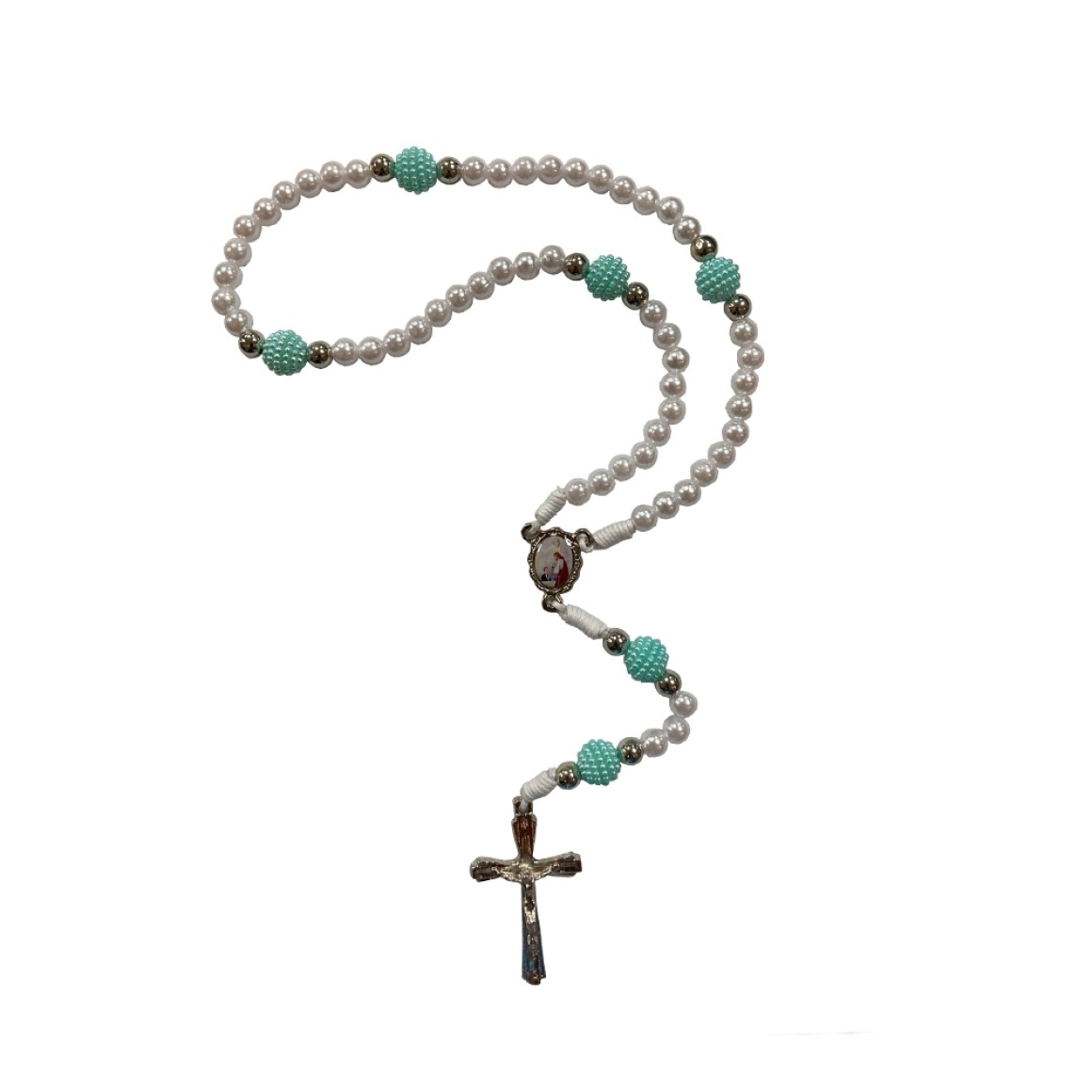 *O Terço é confeccionado com Contas de Pérola nº6 e Entremeio de Metal Resinado.