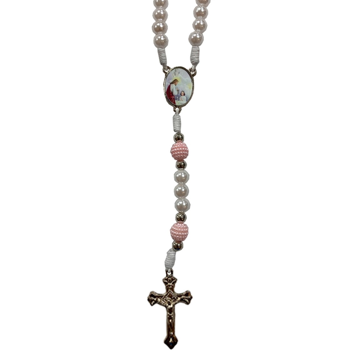 TE112071 - Terço Primeira Eucaristia Pérola Branca - 38cm