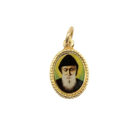 MD102234P20 - Medalha de Alumínio Oval Pequena Dourada c/ 20un. São Charbel- 1,5x1cm