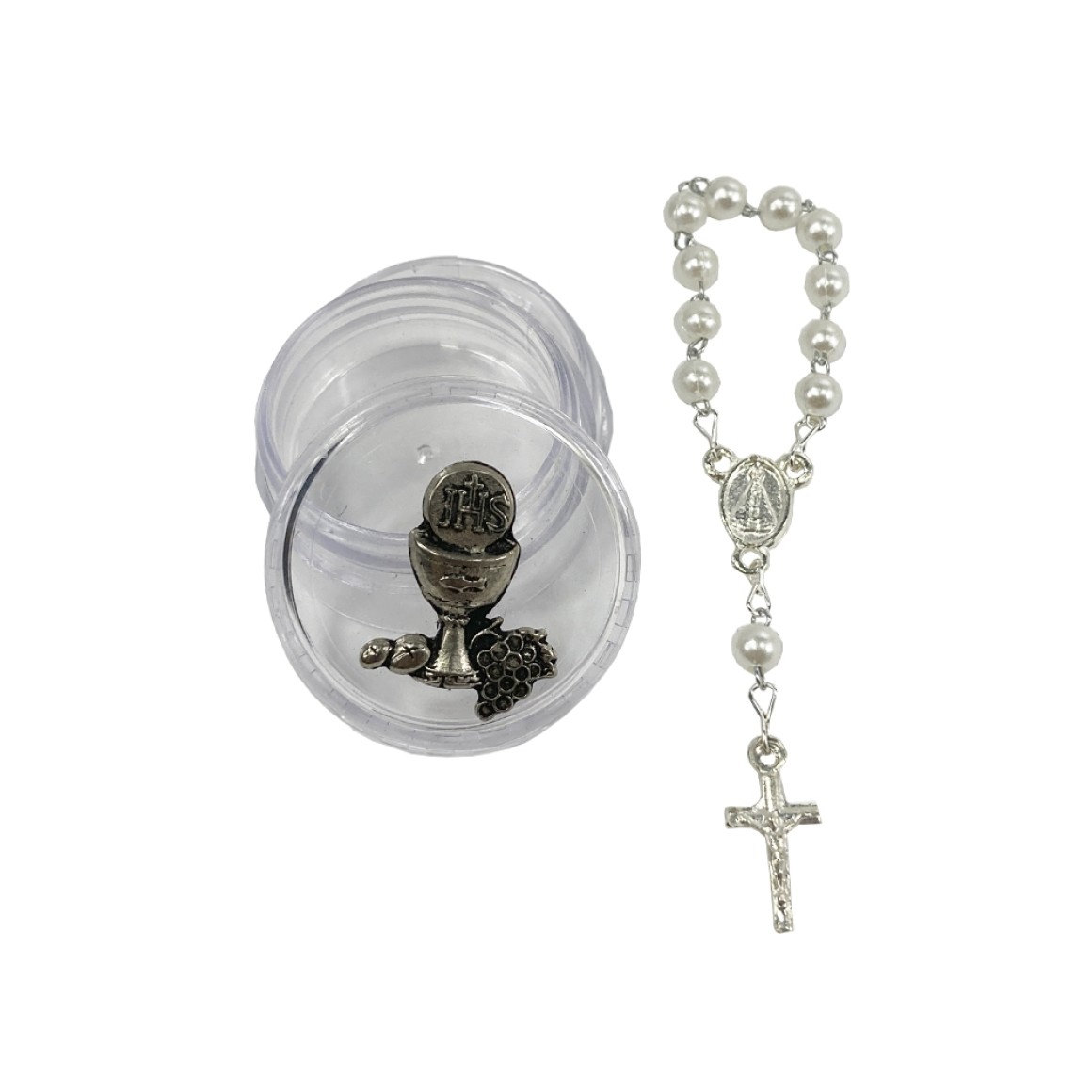 *Caixinha Primeira Eucaristia Níquel Envelhecido c/ Dezena - 3,8x1,7cm.
