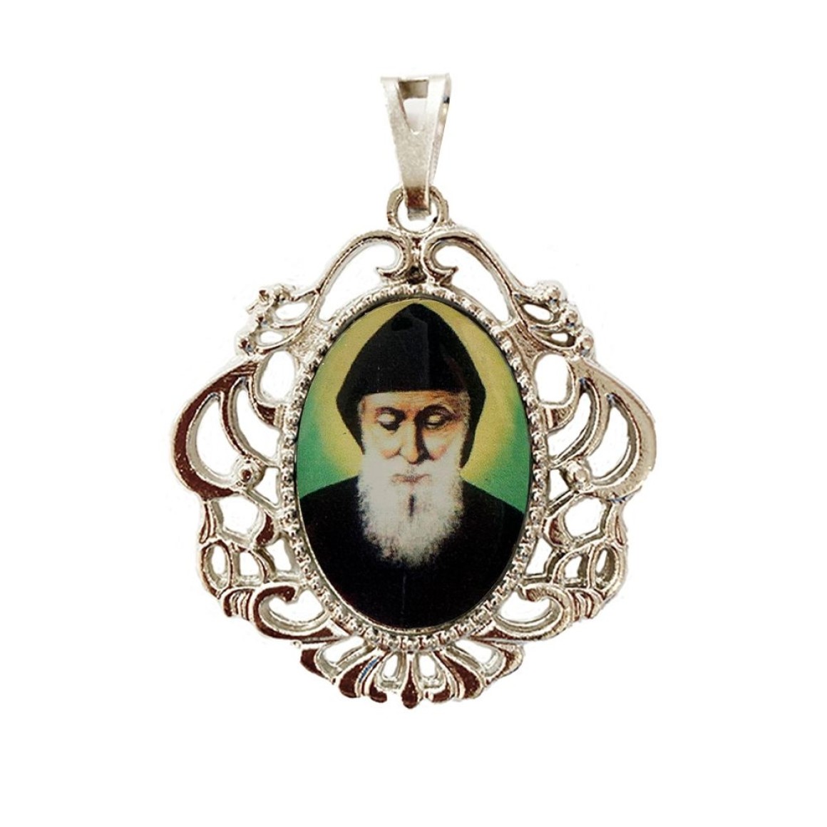 MD129468 - Medalha São Charbel Camafeu Níquel - 4,5x4cm