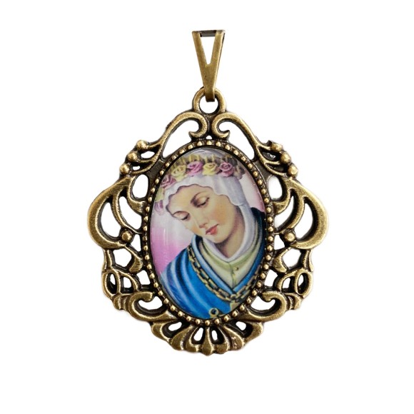 MD129241 - Medalha N. Sra. da Salette Camafeu Ouro Velho - 4,5x4cm