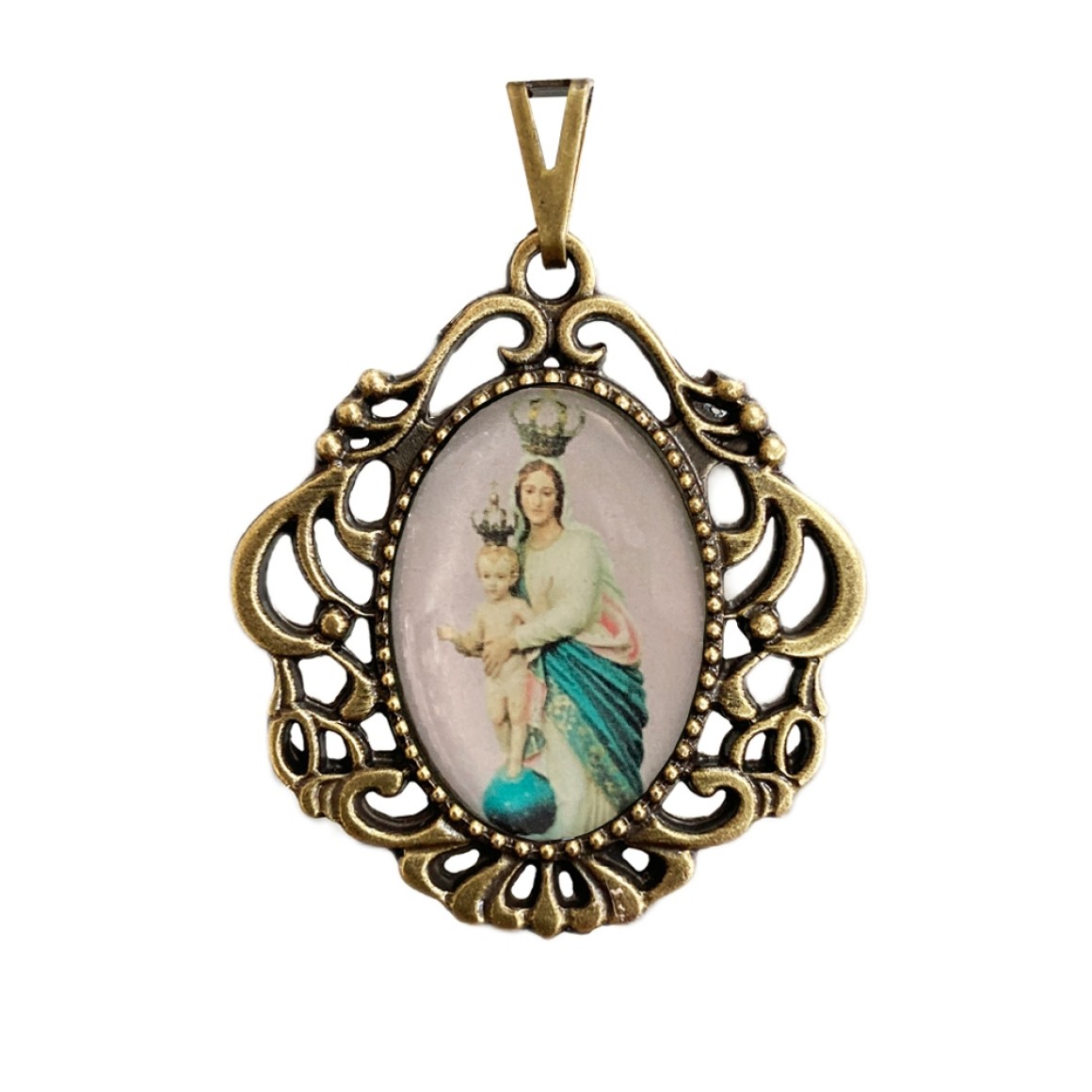 *Medalha N. Sra. da Vitória Camafeu Ouro Velho - 4,5x4cm.