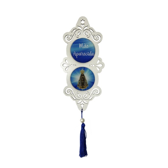 *Adorno N. Sra. Aparecida MDF Branco Resinado - 32x10,2cm.