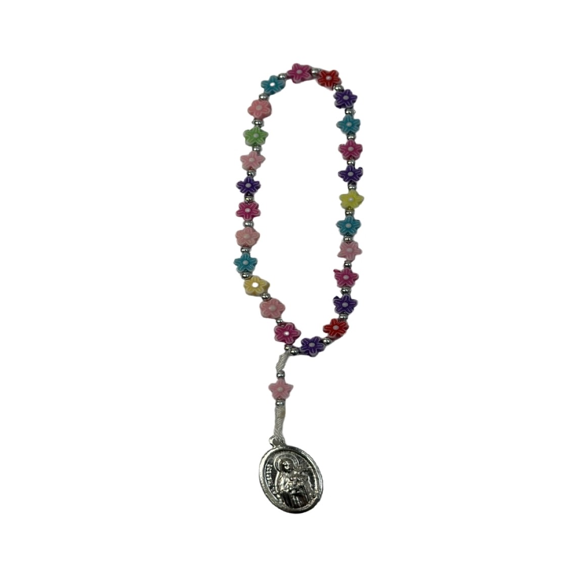 *Terço de Contas de Flor em Acrílico com Medalha;