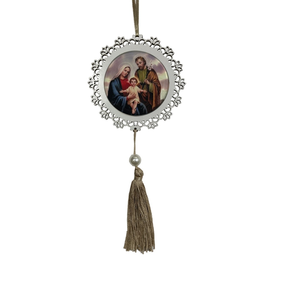 *Adorno Sagrada Família MDF Branco Resinado - 22x9,7cm.