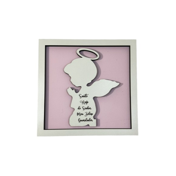 *Quadro Decorativo Santo Anjo Rosa - 18,5x18,5cm.