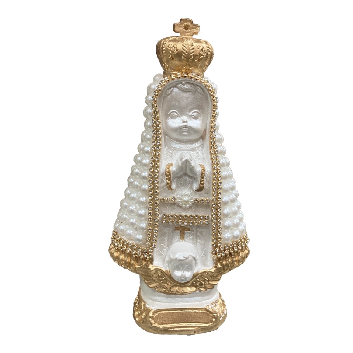 *Imagem N. Sra. Aparecida Infantil c/ Pérola Branca e Strass - 20x9,5cm.