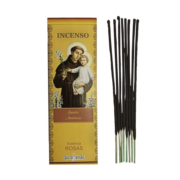 *INCENSO perfumado com aroma de Rosas, Santo Antônio com Oração no verso, com 8 varetas de longa duração.