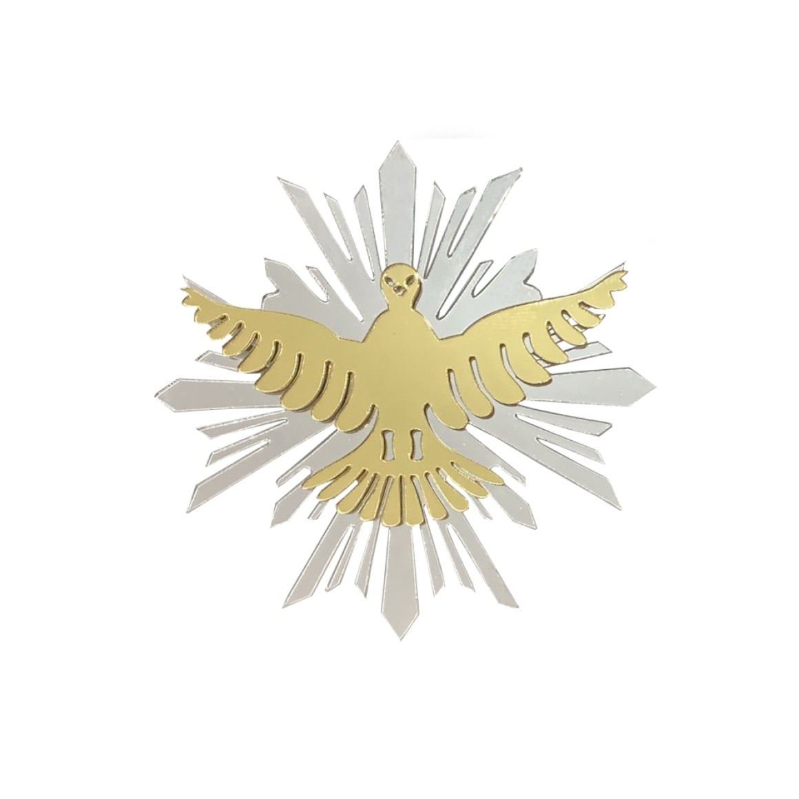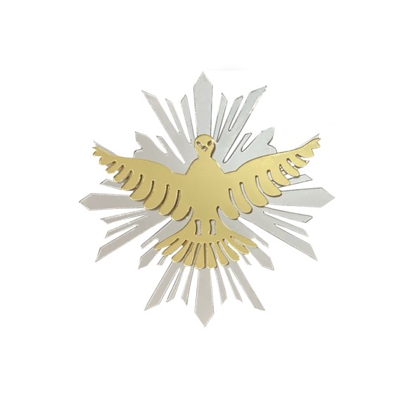*Divino Espírito Santo resplendor em acrílico espelhado.