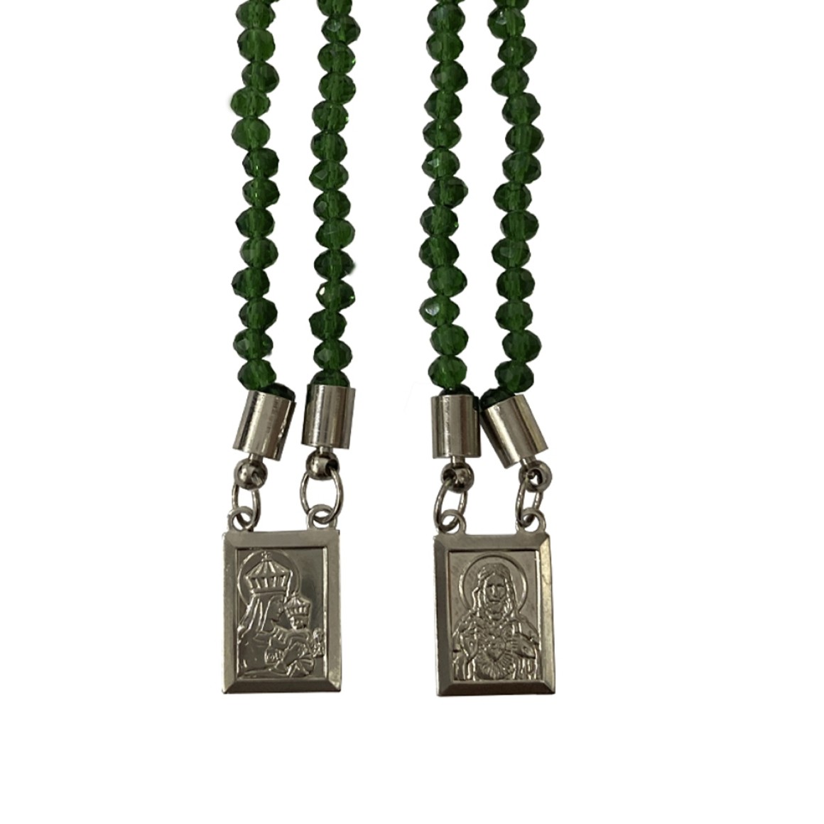 2. ES350218 - Escapulário N. Sra. Do Carmo e Sag. Coração de Jesus Cristal Verde - 70x1,4cm