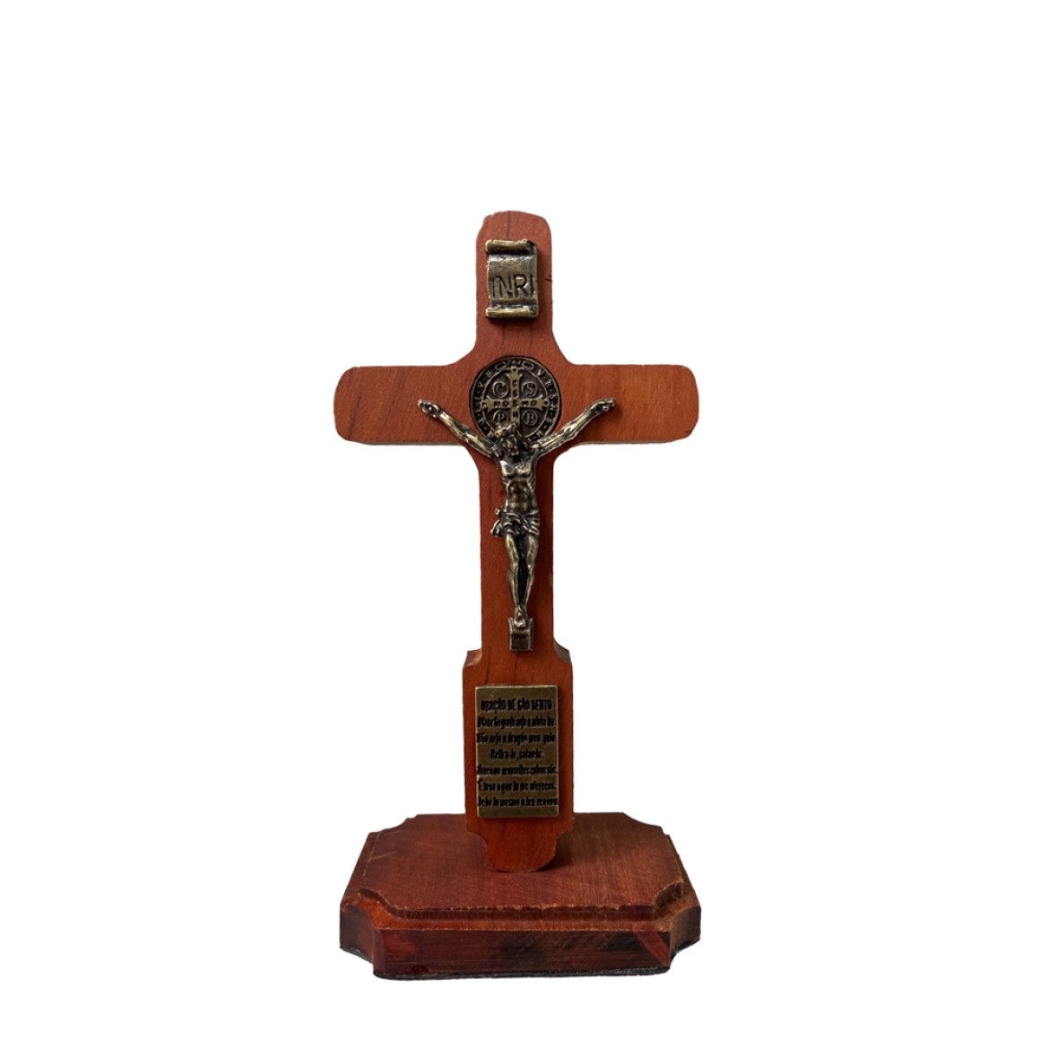 *Crucifixo de Mesa São Bento Madeira - 14,5x7,3cm (460).