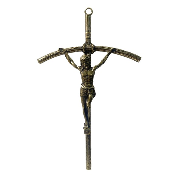 CW831000 - Crucifixo Parede Papa Metal Ouro Velho - 23X14,5cm