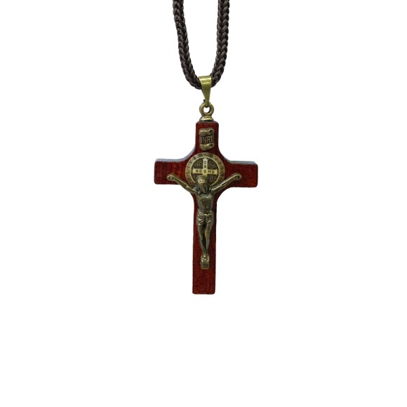 CC360490 - Cordão c/ Crucifixo Madeira São Bento - 38cm