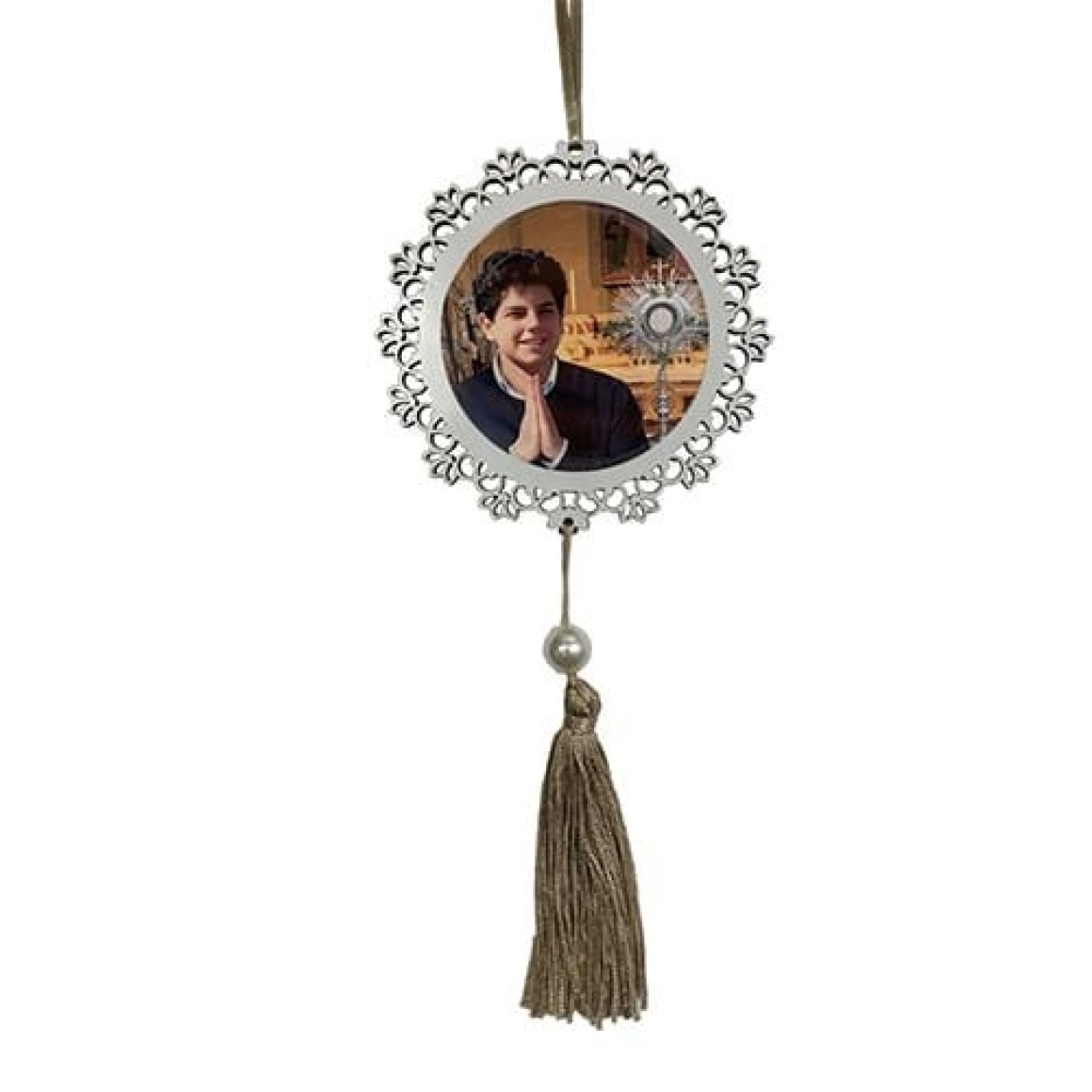 *Adorno São Carlo Acutis MDF Branco Resinado - 22x9,7cm.