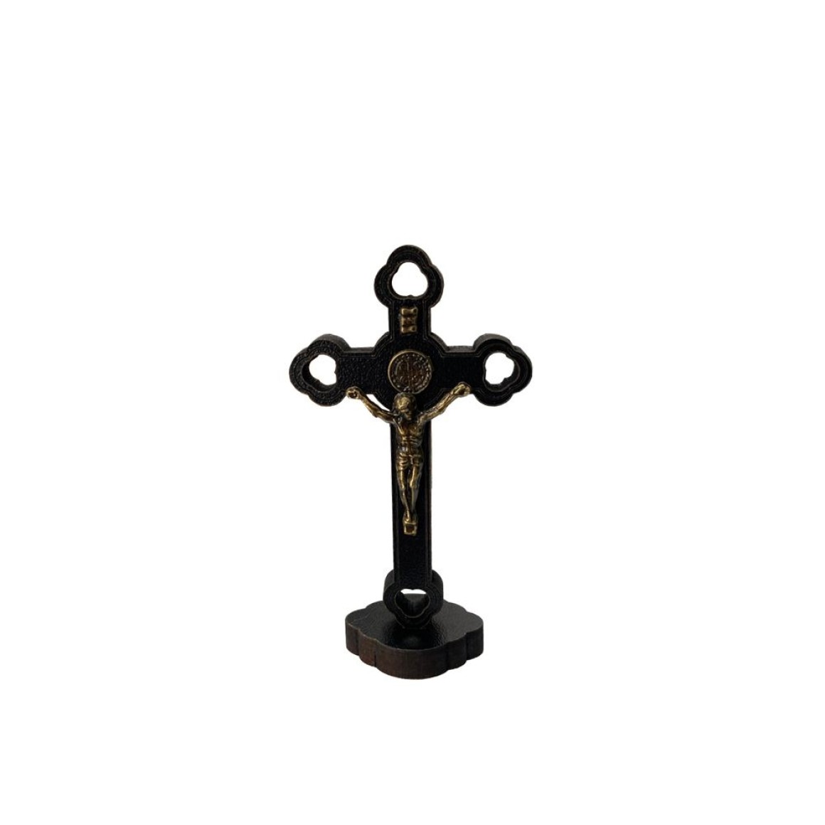 *Crucifixo de Mesa São Bento Madeira Preta - 8,5x4,5cm.