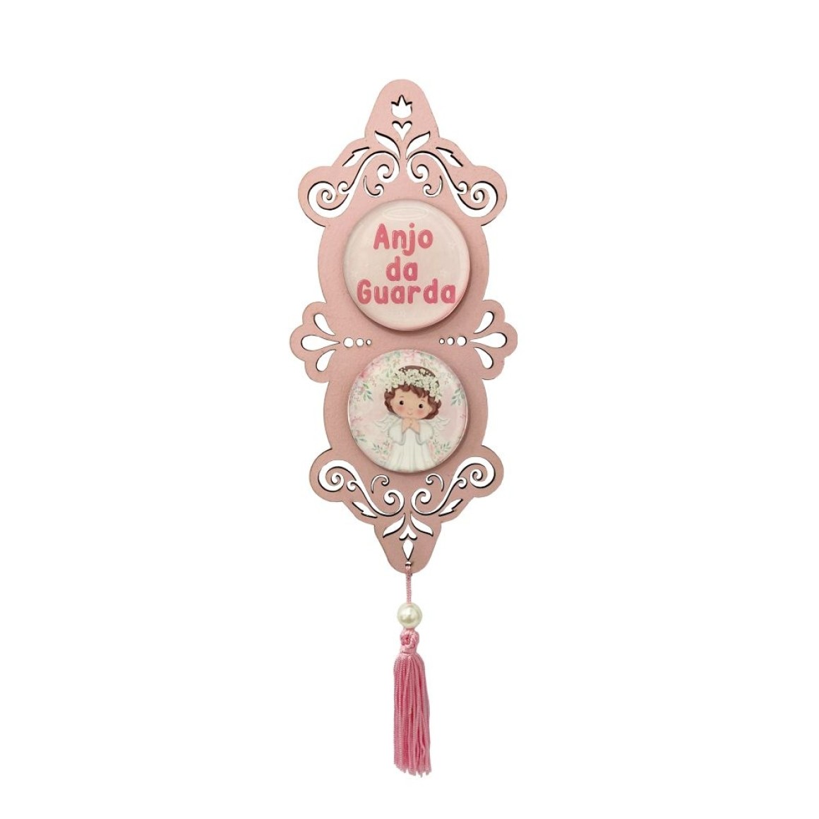 *Adorno Santo Anjo MDF Rosa Resinado- 32x10,2cm.