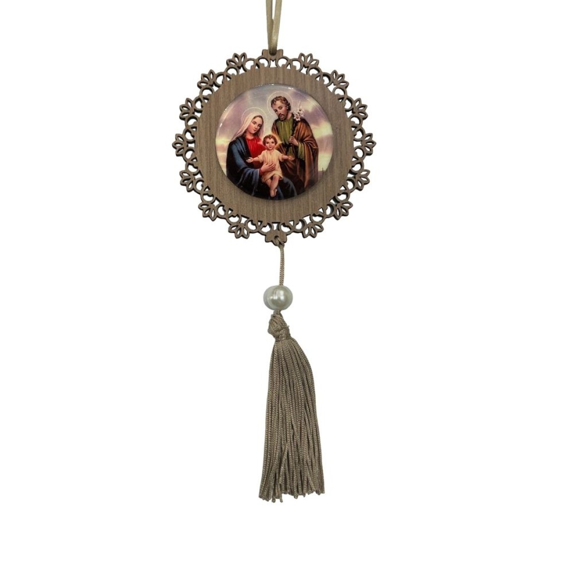 *Adorno Sagrada Família MDF Amadeirado Resinado - 22x9,7cm.
