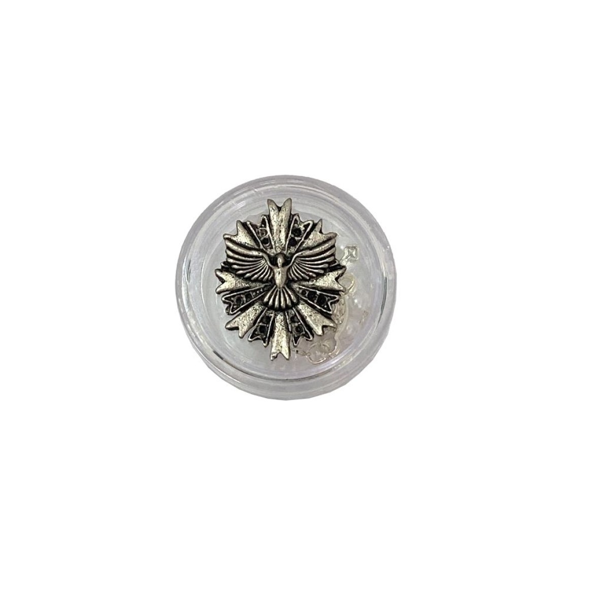 *Caixinha Divino Espírito Santo Níquel Envelhecido c/ Dezena - 3,8x1,7cm.