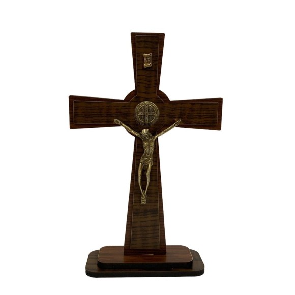 *Crucifixo de Mesa São Bento Madeira - 24x15cm.