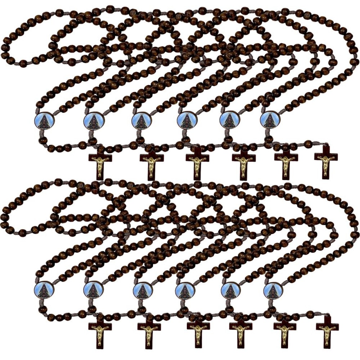 TE940001P12 - Terço N. Sra. Aparecida Madeira c/ 12un.- 37cm