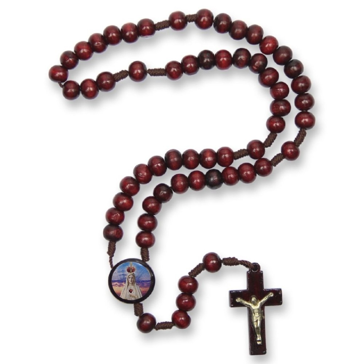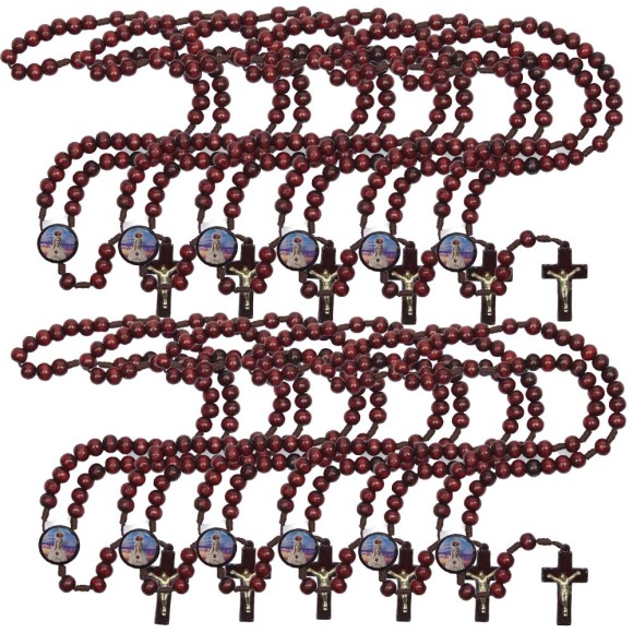 TE940021P12 - Terço N. Sra. De Fátima Madeira c/ 12un. - 37cm