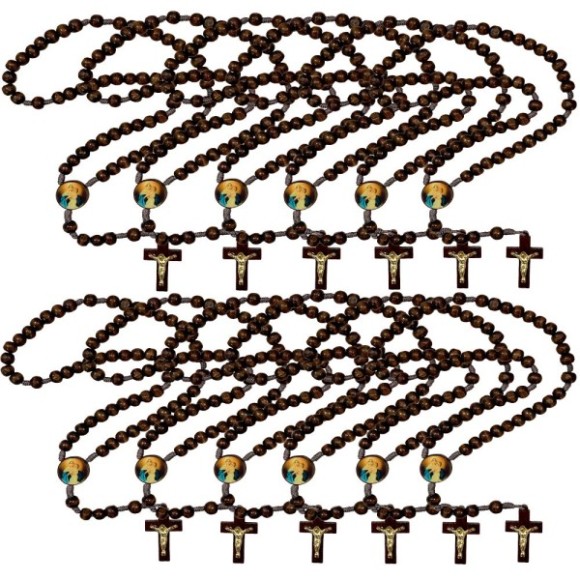 *Terço Mãe Rainha Madeira c/ 12un. - 37cm.