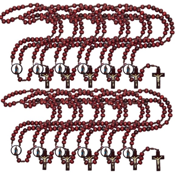 *Terço Maria Passa Na Frente Madeira c/ 12un. - 37cm.