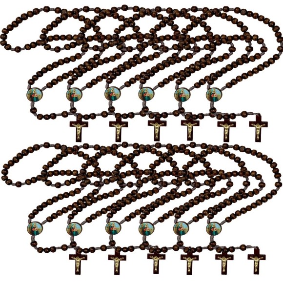 *Terço Santa Ana Madeira c/ 12un. - 37cm.