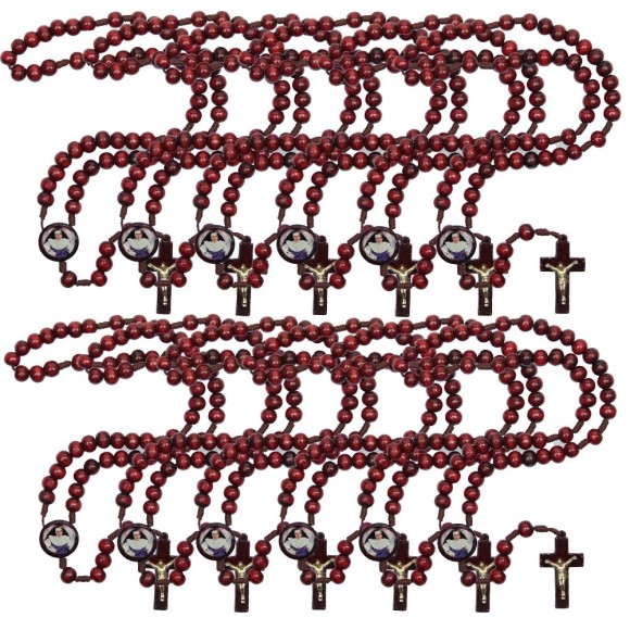 TE940334P12 - Terço Santa Dulce dos Pobres (Irmã Dulce) Madeira c/ 12un. - 37cm