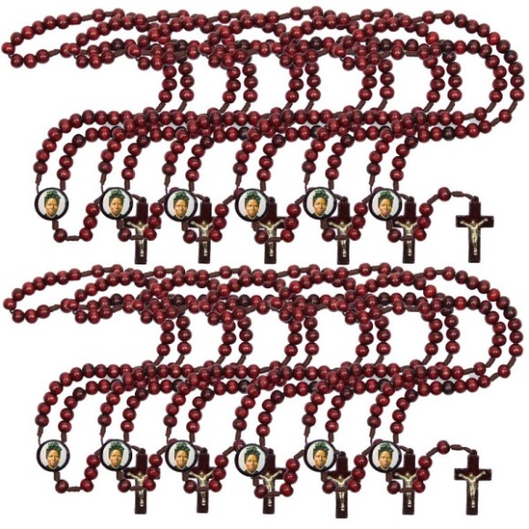 TE940351P12 - Terço Santa Josefina Bakhita Madeira c/ 12un. - 37cm