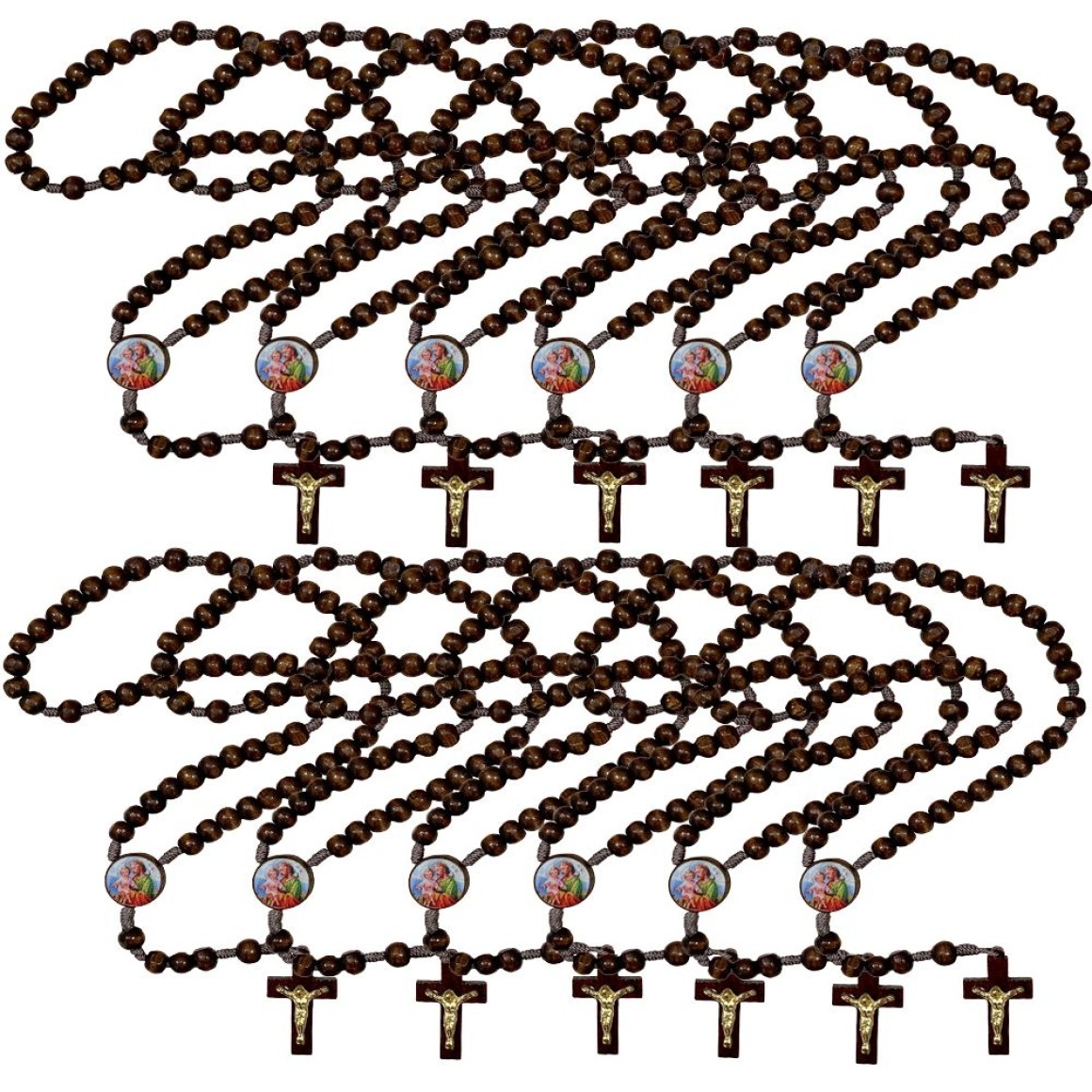 TE940400P12 - Terço São José Madeira c/ 12un. - 37cm