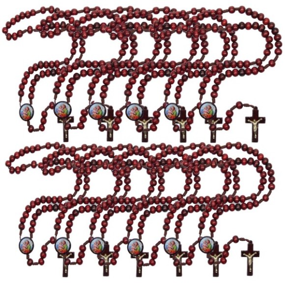TE940401P12 - Terço São José Madeira c/ 12un. - 37cm