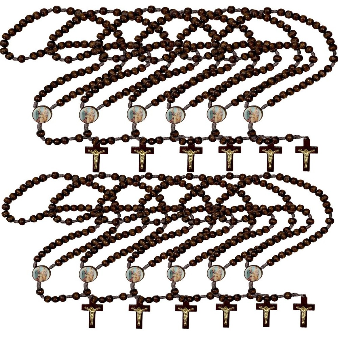 TE940879P12 - Terço Sagrada Família Madeira c/ 12un. - 37cm