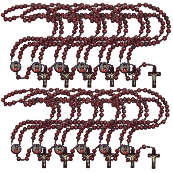 *Terço São Carlo Acutis Madeira c/ 12un. - 37cm.