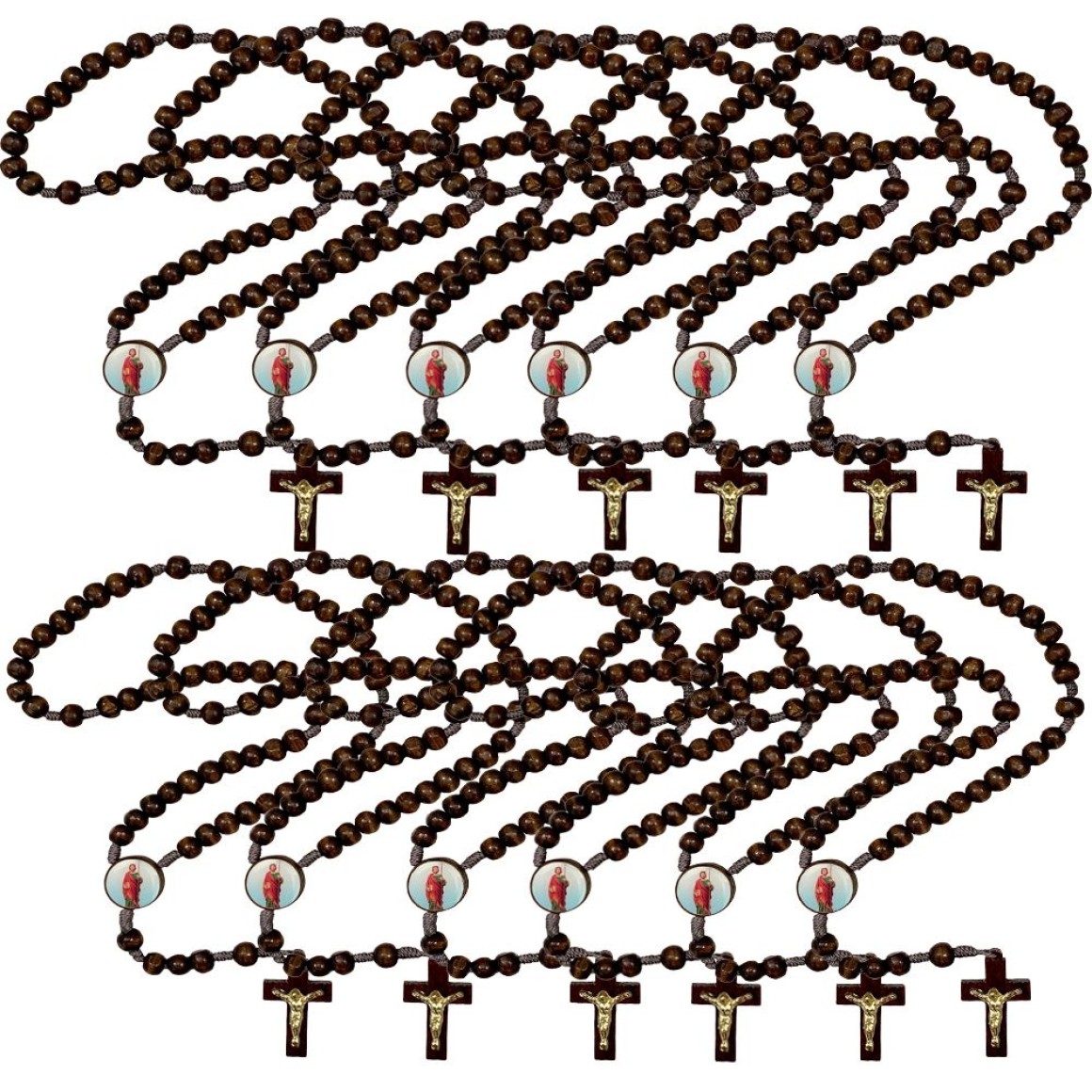 *Terço São Judas Tadeu Madeira c/ 12un. - 37cm.