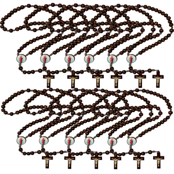 TE940450P12 - Terço São Judas Tadeu Madeira c/ 12un. - 37cm