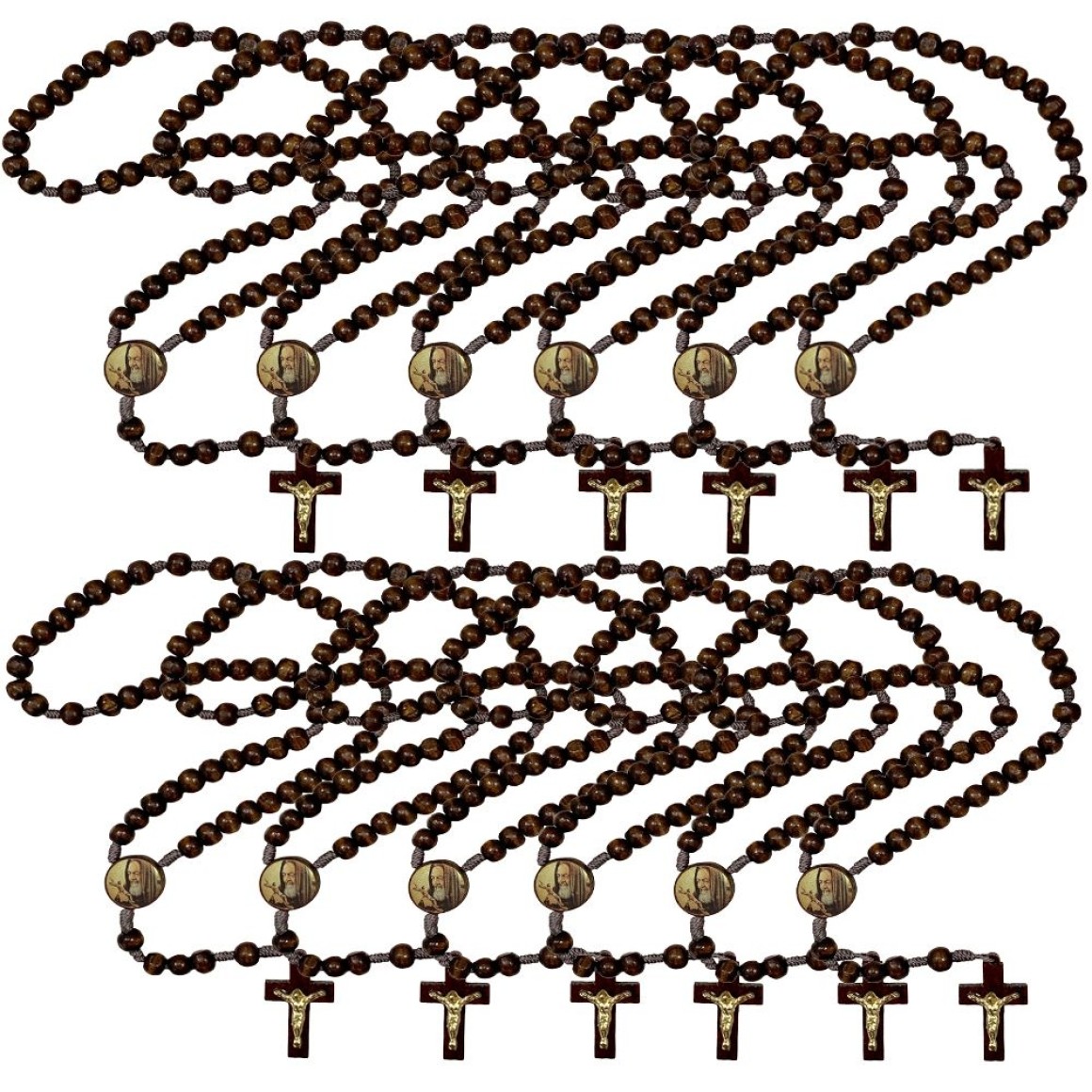 *Terço São Padre Pio de Pietrelcina Madeira c/ 12un. - 37cm.