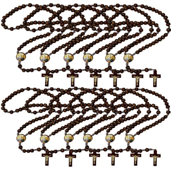 *Terço São Peregrino Madeira c/ 12un. - 37cm.