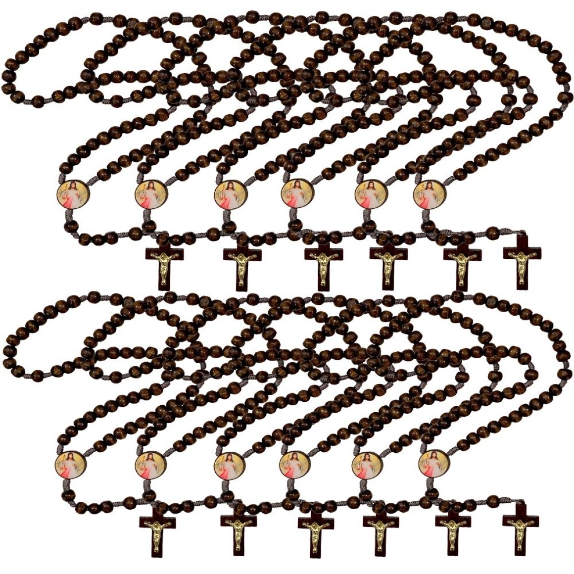 *Terço Jesus Misericordioso Madeira c/ 12un. - 37cm.